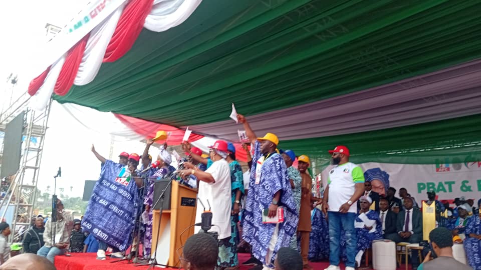 The endorsement was made during a massive rally held at the Ekiti Parapọ̀ Pavilion in Ado-Ekiti, where party leaders and supporters gathered in large numbers to celebrate the administration’s achievements and reaffirm their confidence in the governor’s leadership.